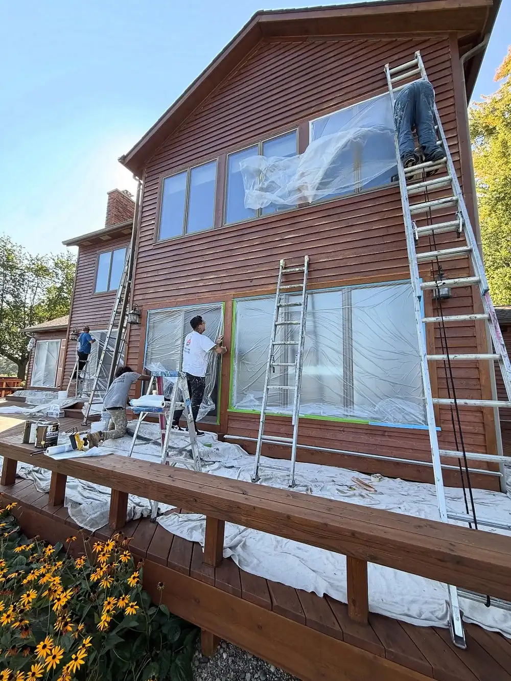 Next, we apply primer where needed and use high-quality paints designed for exterior durability. Our team works carefully to achieve even coverage and clean lines.